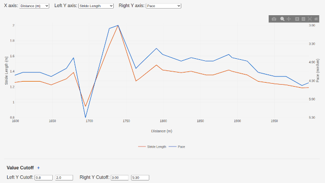 In the earlier blog post we continued sharing more details on a browser-based Dual Axis Plot widget, which allows to plot metrics like speed, heart rate or cadence simultaneously over the route sections. In this post we'll provide a bit more details on how to use cut-off values.