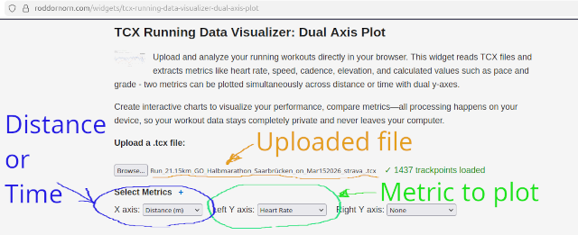 For this purpose, we'll take a tcx file recorded at the most recent our race - 20th. GO! Halbmarathon Saarbrücken, on 15 Mar 2026.