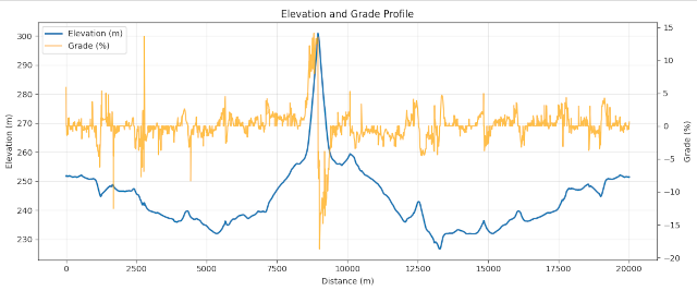 Elevation grade reaches up to 14% at the steepest parts, it's definitely not the highest value ever, the route is still runnable. However, this kind of grade feels different compared to a flat route, and running style requires some adjustments.